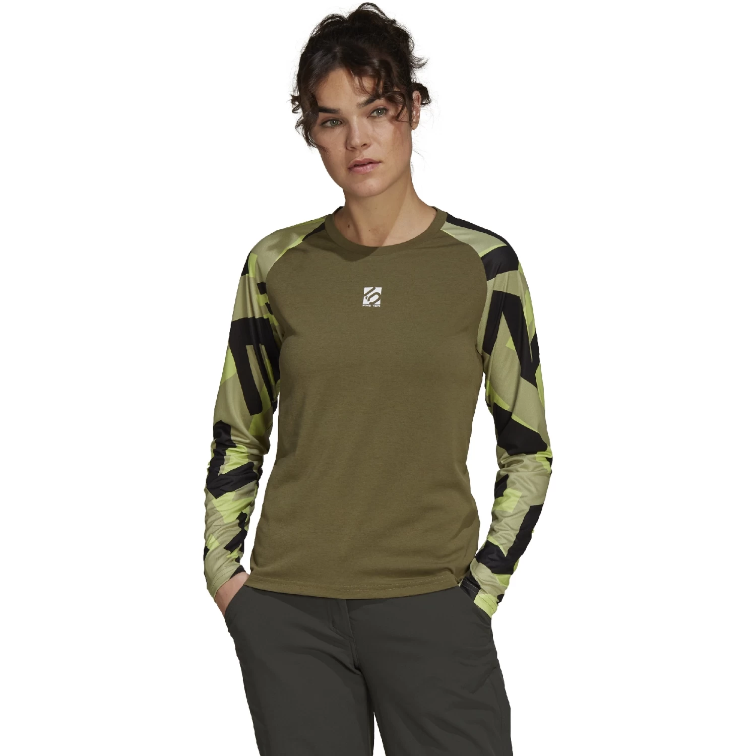Lock down riding style that you can rally in. This lightweight adidas t-shirt has long sleeves to help shield you from sun and mud. A Five Ten print keeps you pumped as you pedal. Moisture-absorbing AEROREADY gets you back to the car in dry comfort.